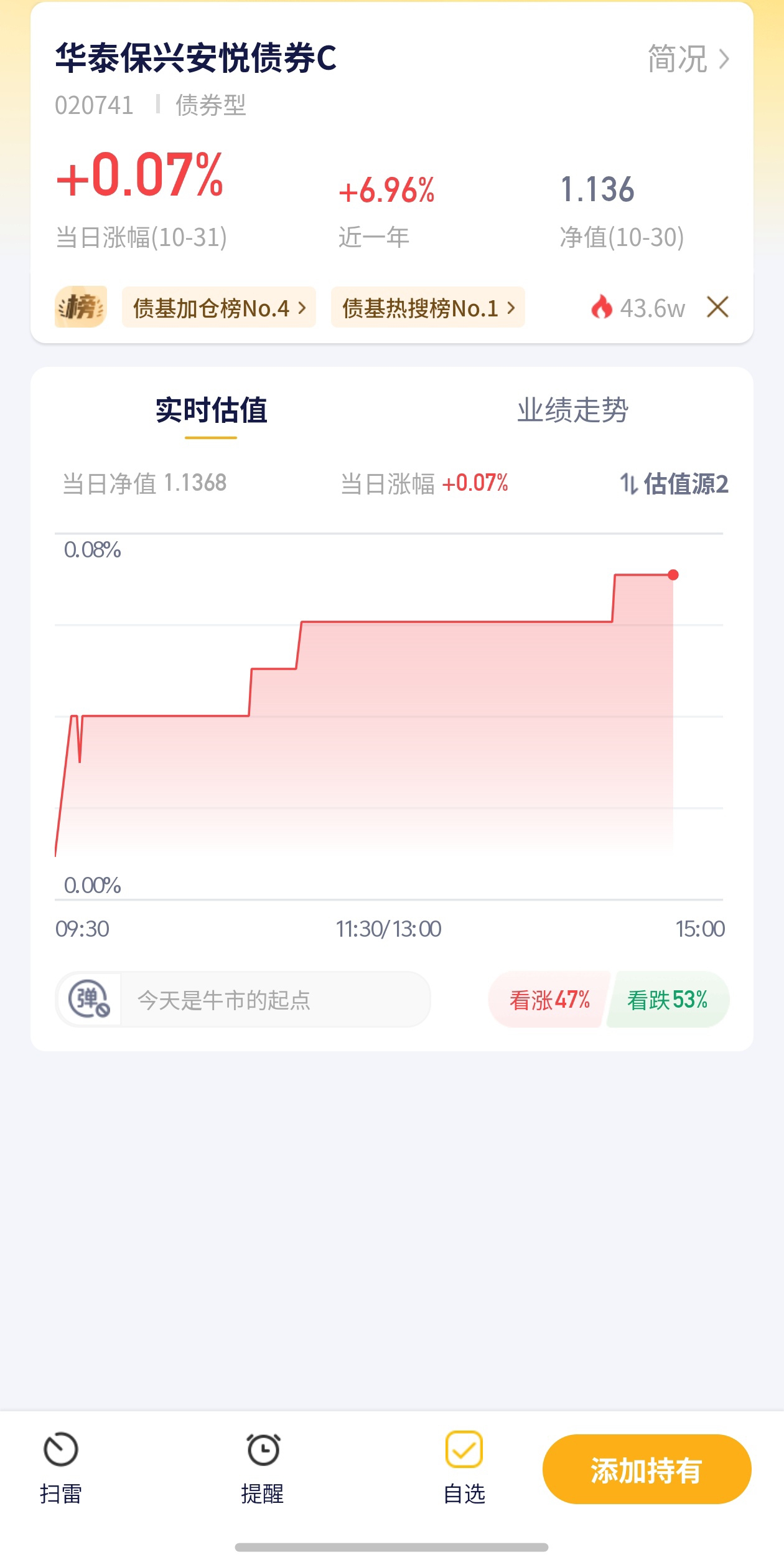 【华泰保兴安悦债券C估值播报+10.31行情】