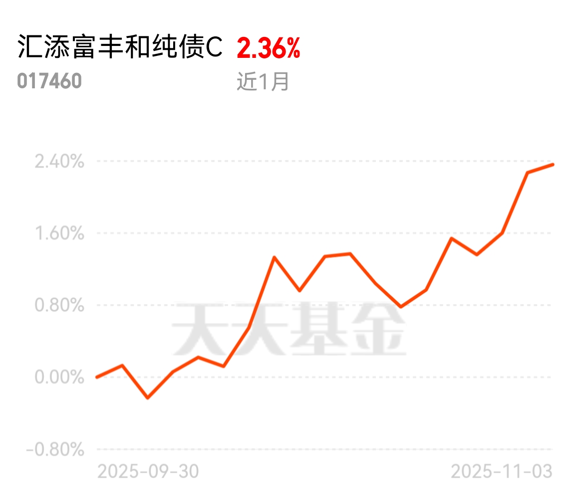 最近股市波动挺明显,股债跷跷板效应又凸显了,超长债正好在回暖。跟踪30年国债的汇添富丰表现很亮眼,近1个月涨了2.36%,想避避股市风险的可以多看看。