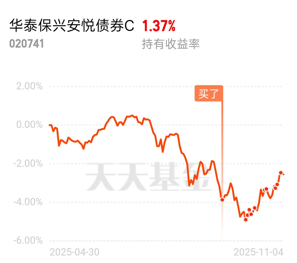 已经赚了一个多点了,今天又要收大蛋了呢$华泰保兴安悦债券C$