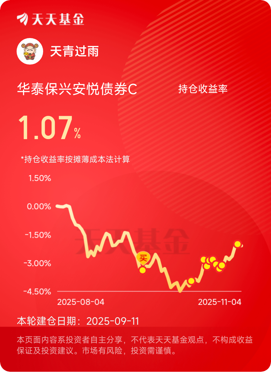 现在市场波动大,长期稳定收益才是王道$华泰保兴安悦债券C$ #晒收益#