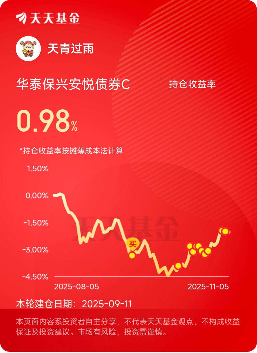 长期稳稳收蛋,选这个真是太安心了$华泰保兴安悦债券C$ #晒收益#