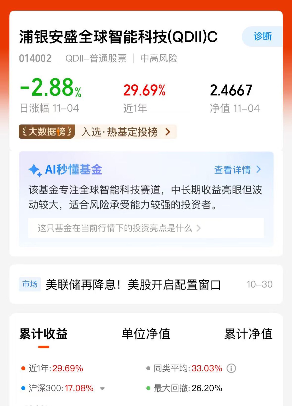目前定投美股市场或仍是大多数人实现财富快速增长的最优途径,我选择$浦银安盛全球智能科技(QDII)C$ 完全不限购收益还稳定