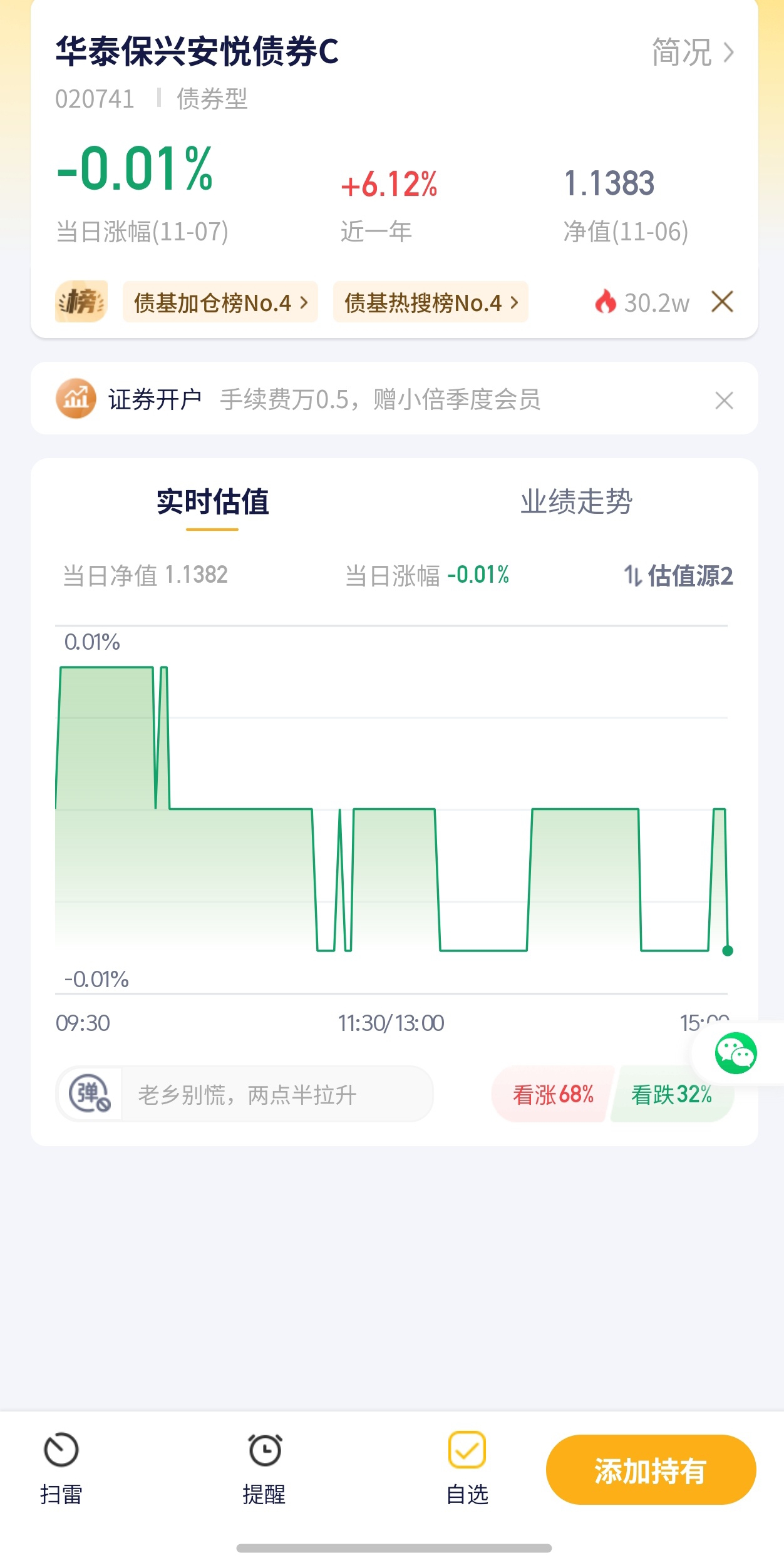 4. 【华泰保兴安悦债券C估值播报+11.07行情】