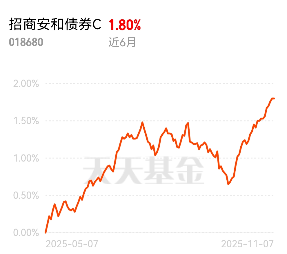 股债跷跷板风险下,这支周五继续收了1个蛋周五债市调整,这支$招商安和债券C$也算