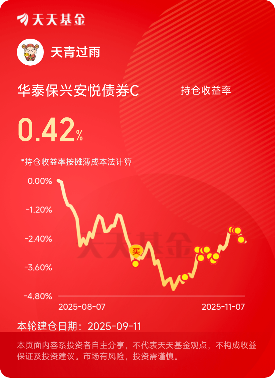 这债还是比较靠谱的,毕竟长期收益就在这放着呢$华泰保兴安悦债券C$ #晒收益#