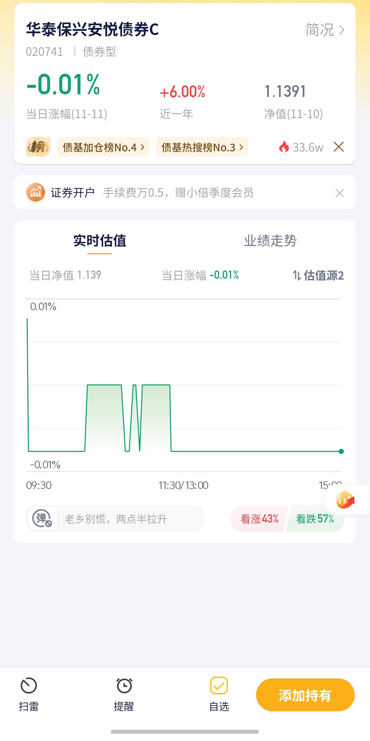 2. 【华泰保兴安悦债券C估值播报+11.11行情】华泰保兴安悦债券C今日预估涨幅-0.01%!债市小幅波动,该基金表现平稳,回撤极小。