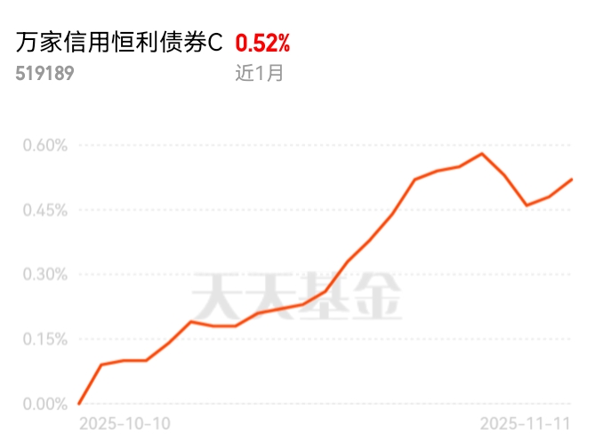 表现不错了,收蛋2个,也可以考虑搭配点其他产品,$万家信用恒利债券C$昨天晚上也