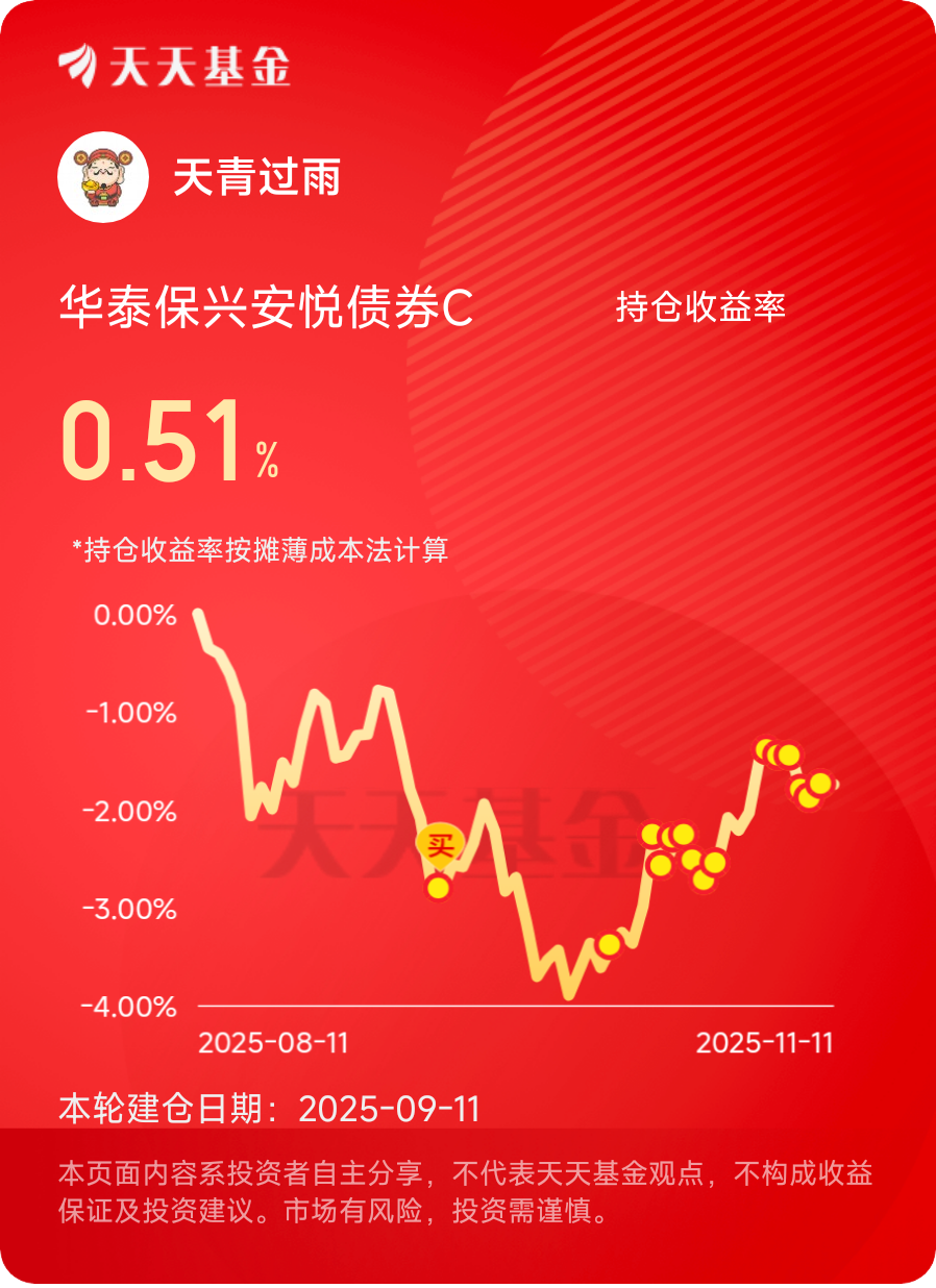 长拿收益才能更好,震荡的时候也要得拿稳$华泰保兴安悦债券C$ #晒收益#