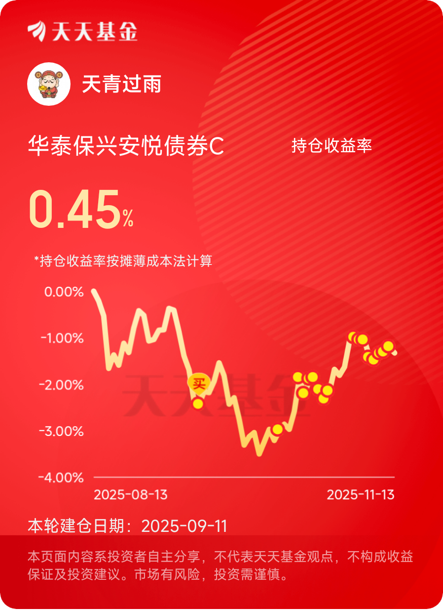权益波动的时候债基的收益才更显珍贵$华泰保兴安悦债券C$ #晒收益#