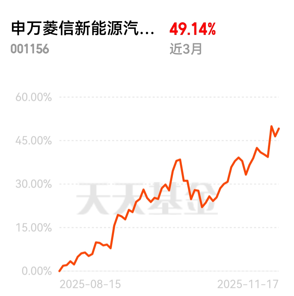 年底购车潮叠加政策红利,新能源车成为市场消费热点,关注度持续提升。申万菱信新能源汽车贴合热点趋势,近3个月业绩49.14%,紧跟市场热度,靠谱可关注。