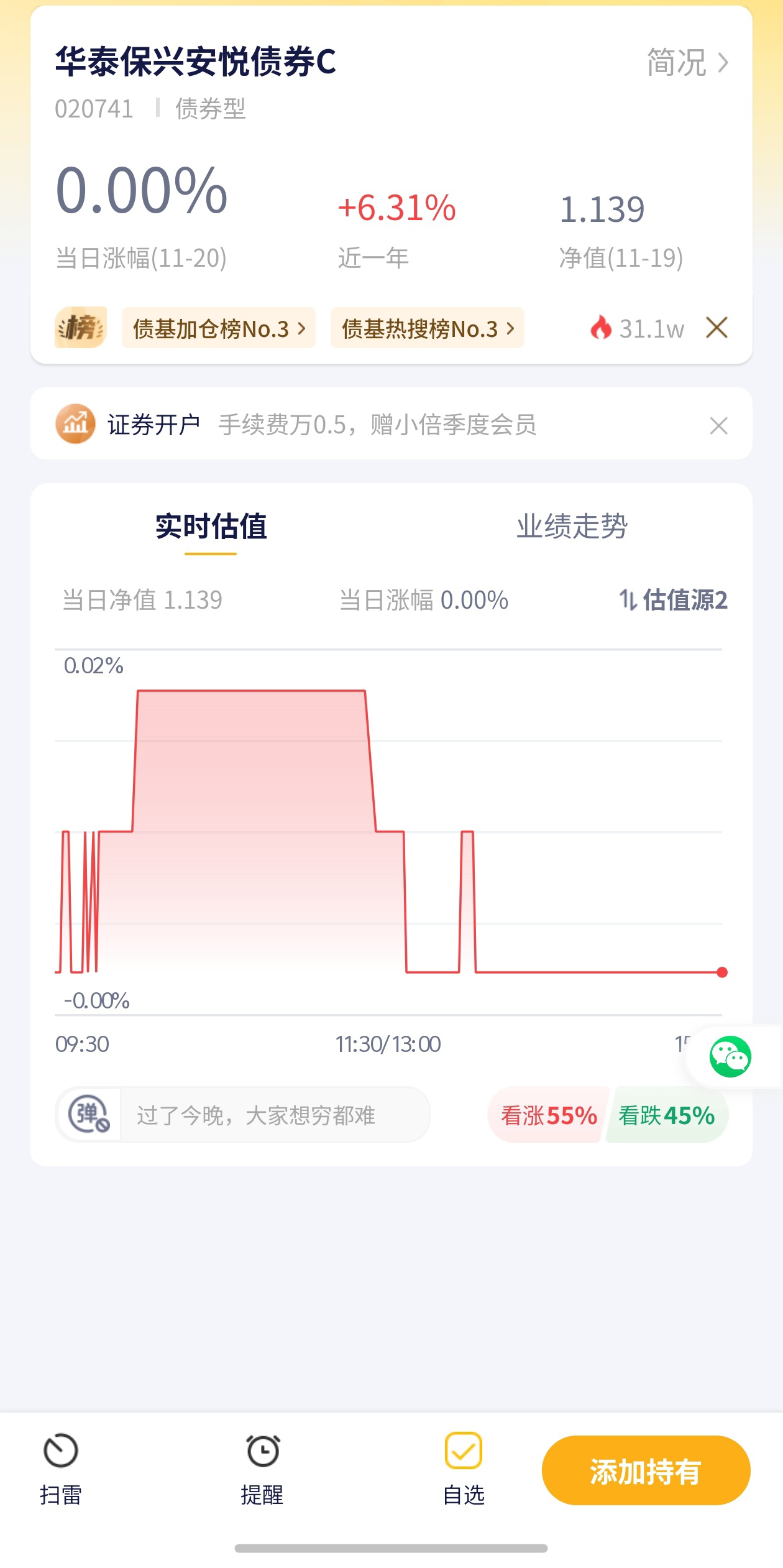 华泰保兴安悦债券C今日预估涨幅0.00%!债券类基金整体平稳,这只基金保持了稳健的表现,波动很小。
