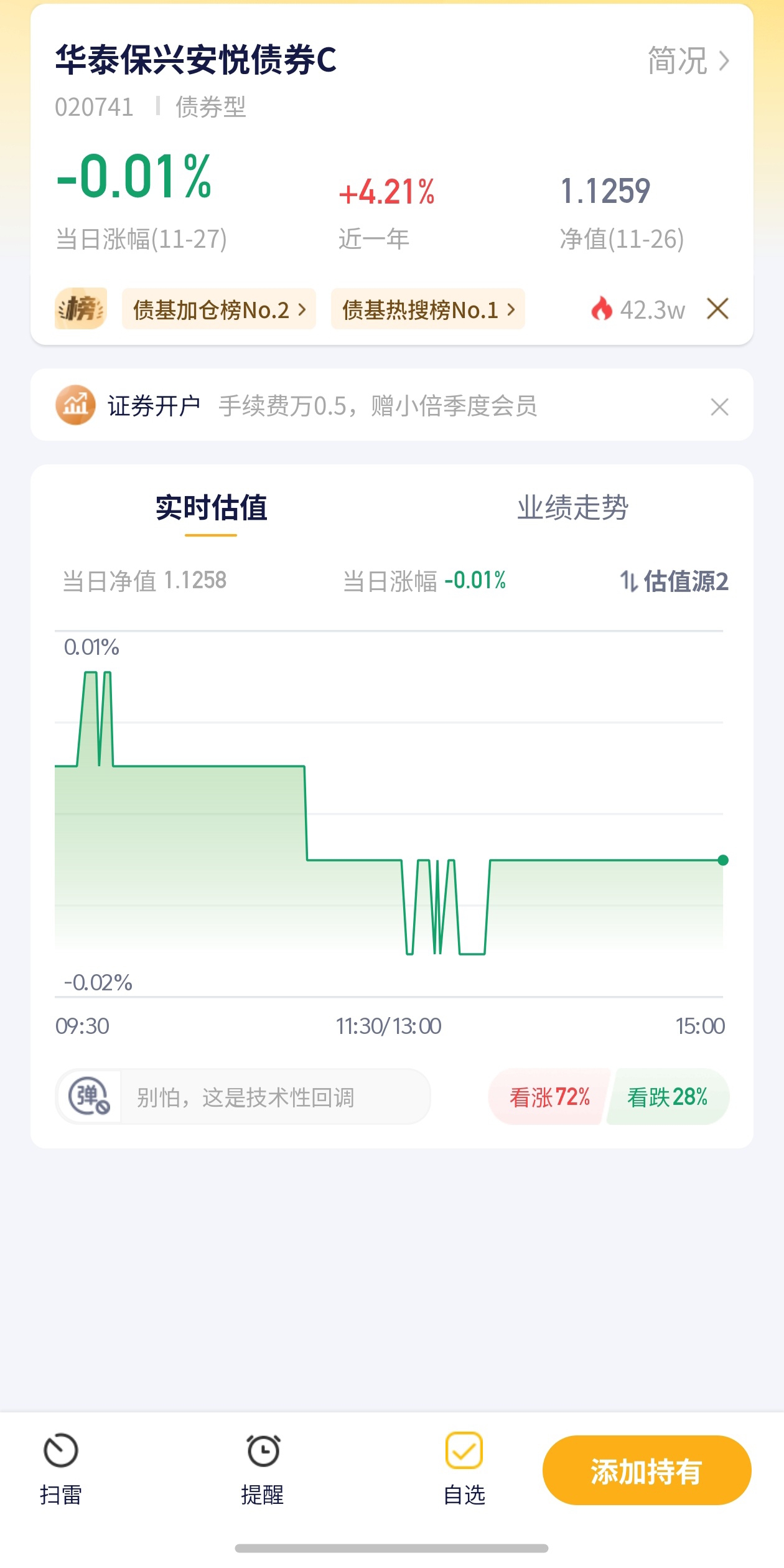 4. 【华泰保兴安悦债券C估值播报+11.27行情】
