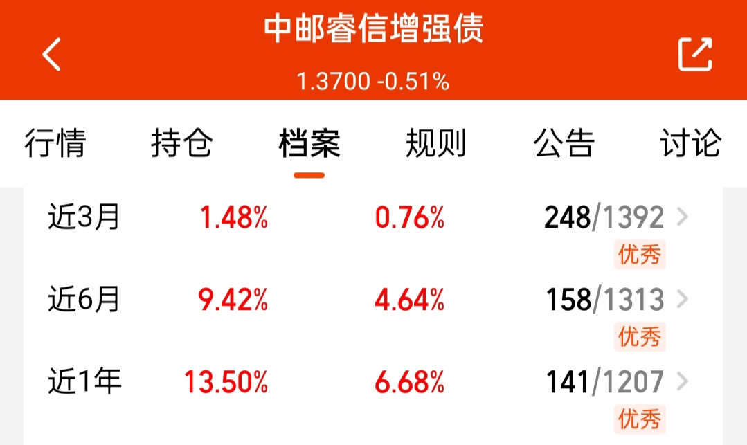 今天准备礼物补仓$中邮睿信增强债$,混债中波动比较小的,长期收蛋也不错,主投信用