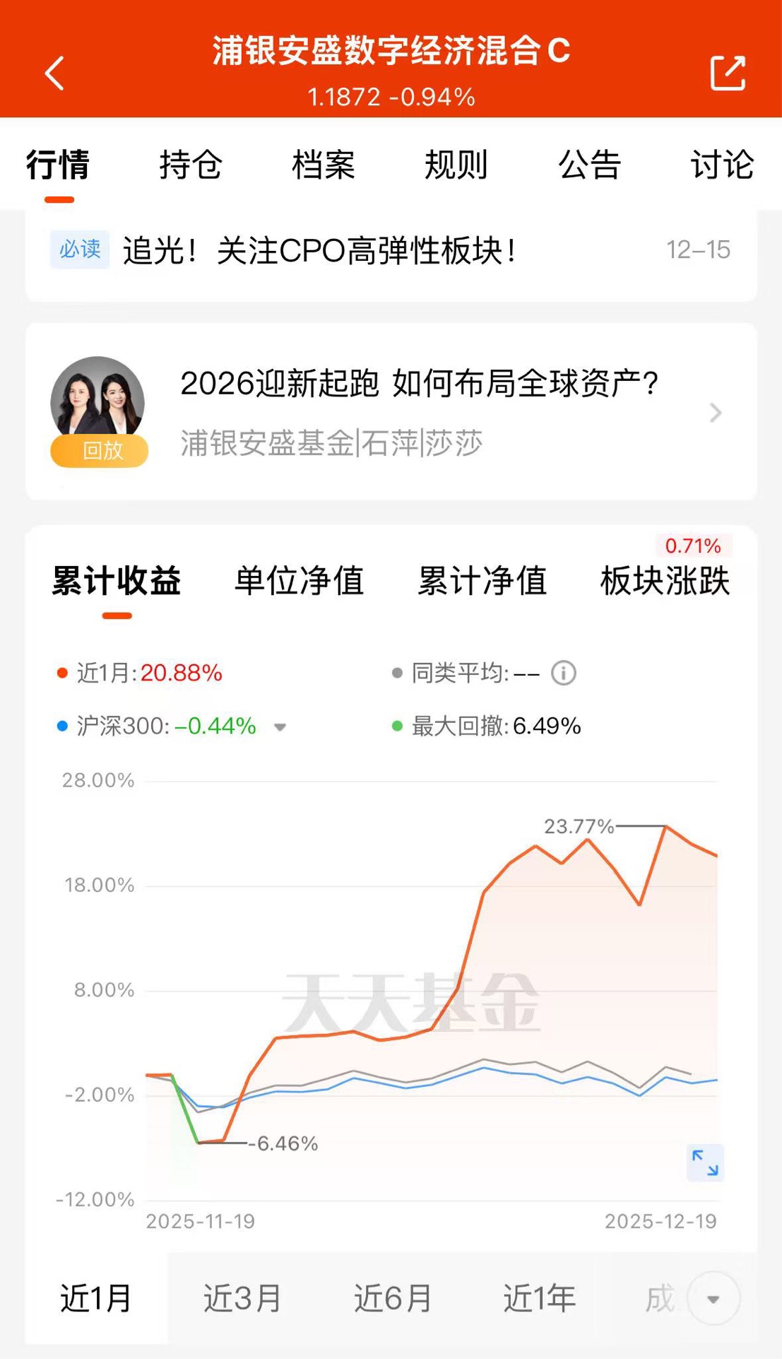 #2025即将收官 明年怎么投?# cpo后续还能涨,浦银数字经济近一月业绩还是顶,再跌我再抄,定投参与比踩点进稳妥$浦银安盛数字经济混合C$