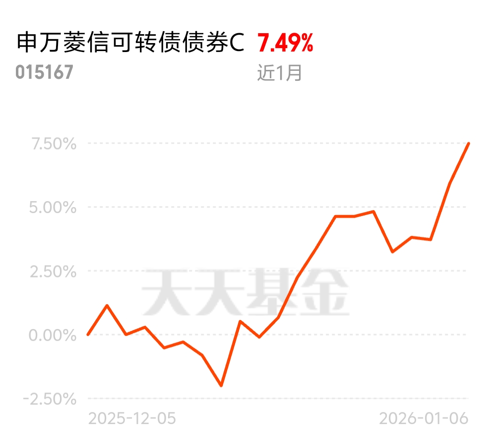 近期权益市场走强,转债市场量价齐升,行情持续升温。申万菱信可转债C近1月7.49