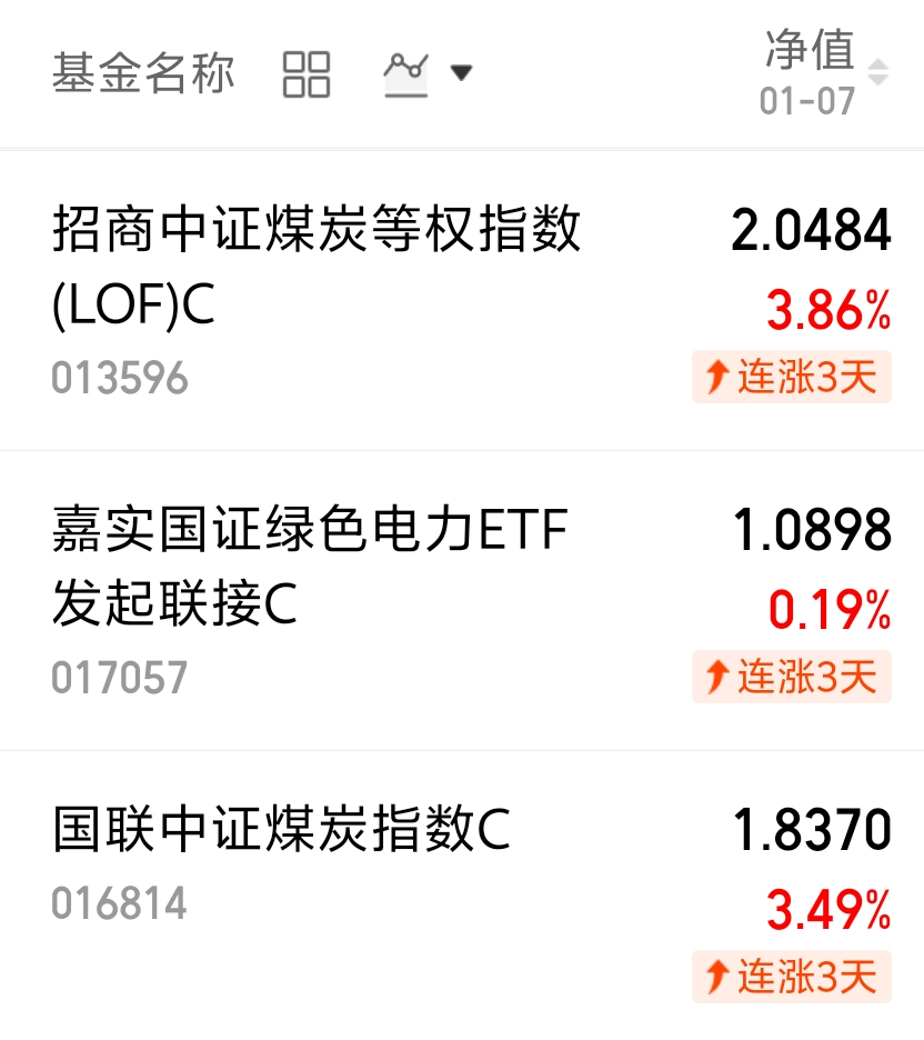 $招商中证煤炭等权指数(LOF)C$ 昨天涨了3.86%,太给力了!