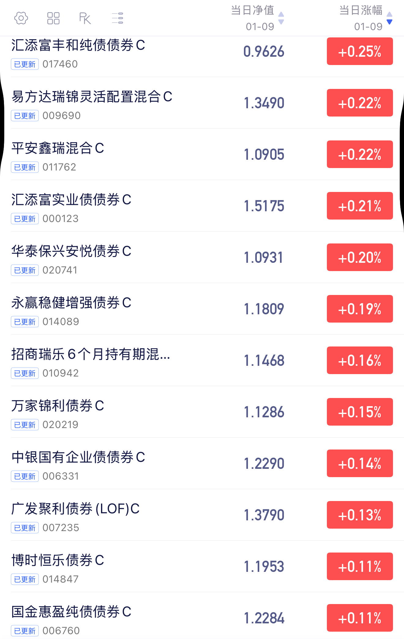1月9日报蛋:汇添富丰和纯债债劵C今日收25个大蛋!