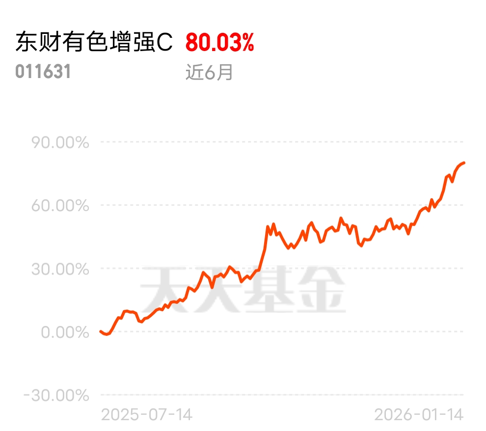 有色金属指数单日涨 2.43%,多股涨停赚钱效应拉满,资金抢筹不停!$东财有色增强C$ 近 6 月 80.03%,隔壁都在说这只太稳了,回撤控制得好,我准备把其他持仓转一部分过来~