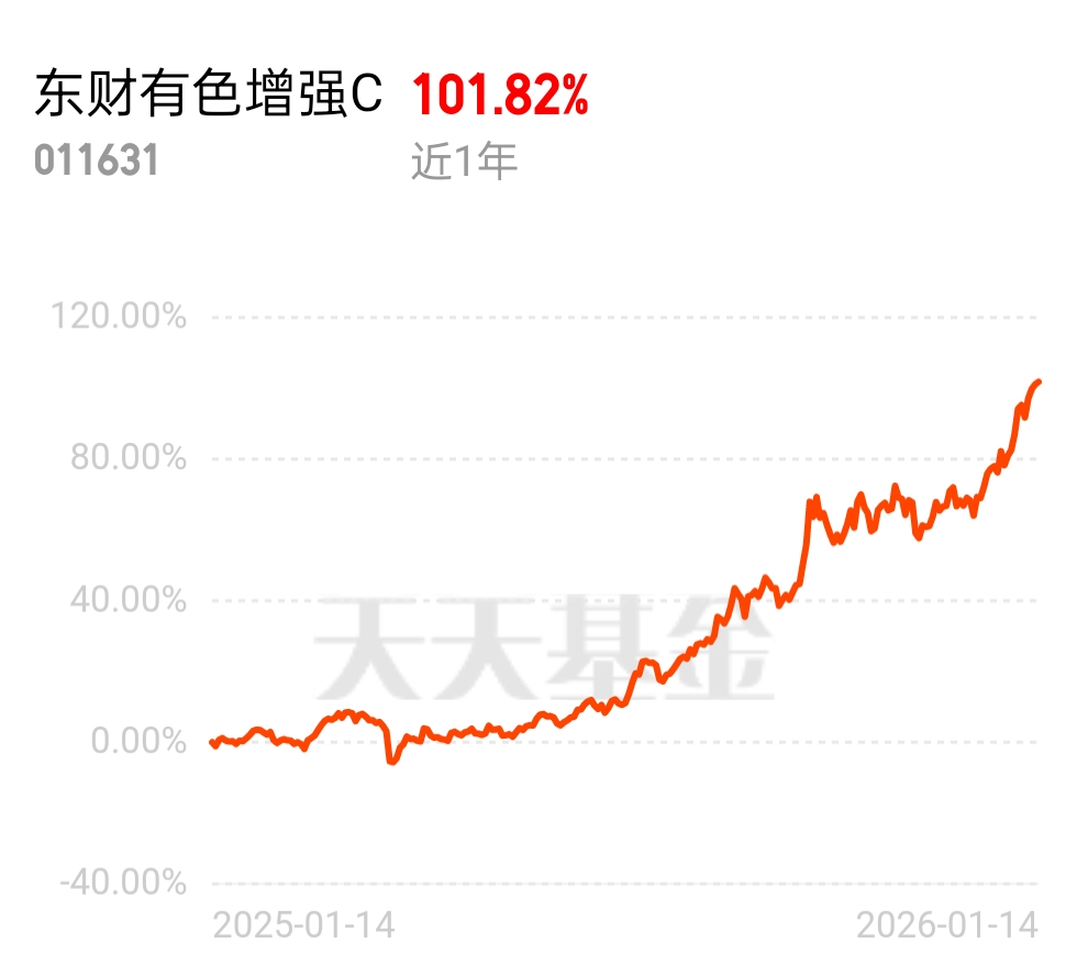 全球央行增持贵金属,地缘冲突推升避险需求,有色板块强势领跑!$东财有色增强C$ 近 1 年 101.82%,现在的有色就是以前的纳指,能涨还抗揍,同类表现超亮眼~