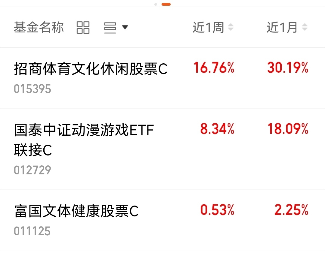 $招商体育文化休闲股票C$近一周涨幅16.76%, 持仓以AI应用+传媒游戏等热点方向为主,深度聚合市场趋势,捕捉收益能力强!