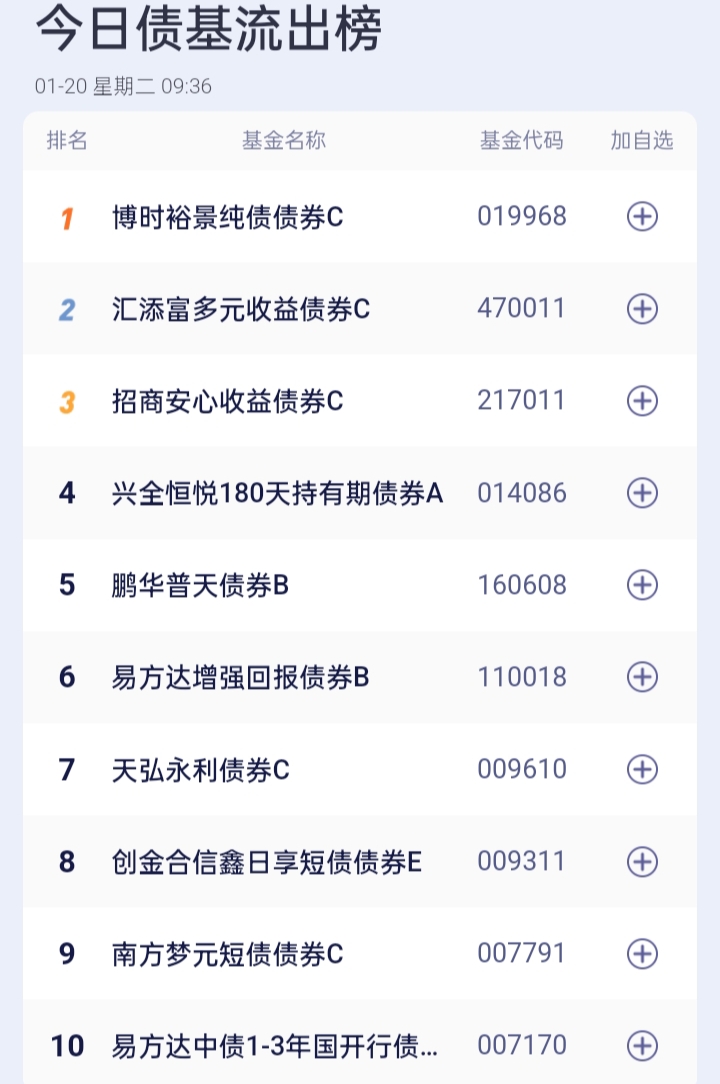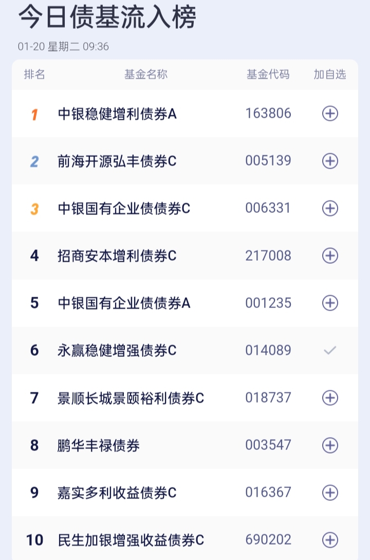 $永赢稳健增强债券C(OTCFUND|014089)$。$易方达增强回报债券A(OTCFUND|110017)$。$方正富邦鸿远债券C(OTCFUND|015909)$。$东方添益债券(OTCFUND|400030)$。$华泰保兴安悦债券A(OTCFUND|007540)$。$长城短债C(OTCFUND|007195)$。$博时恒乐债券C(OTCFUND|014847)$。$广发中债7-10年国开债指数E(OTCFUND|011062)$。$鹏华丰禄债券(OTCFUND|003547)$。$博时恒乐债券A(OTCFUND|014846)$
