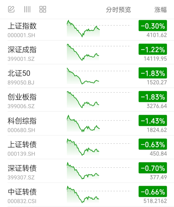 A股市场重要指数:全部下跌。今天偏股混基可能下跌。
