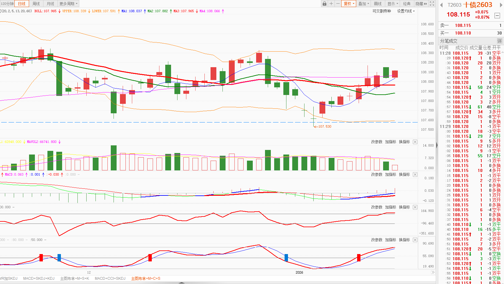 今天10年国债期货小幅低开后高走,涨0.07%,日K线在5日均线之上。