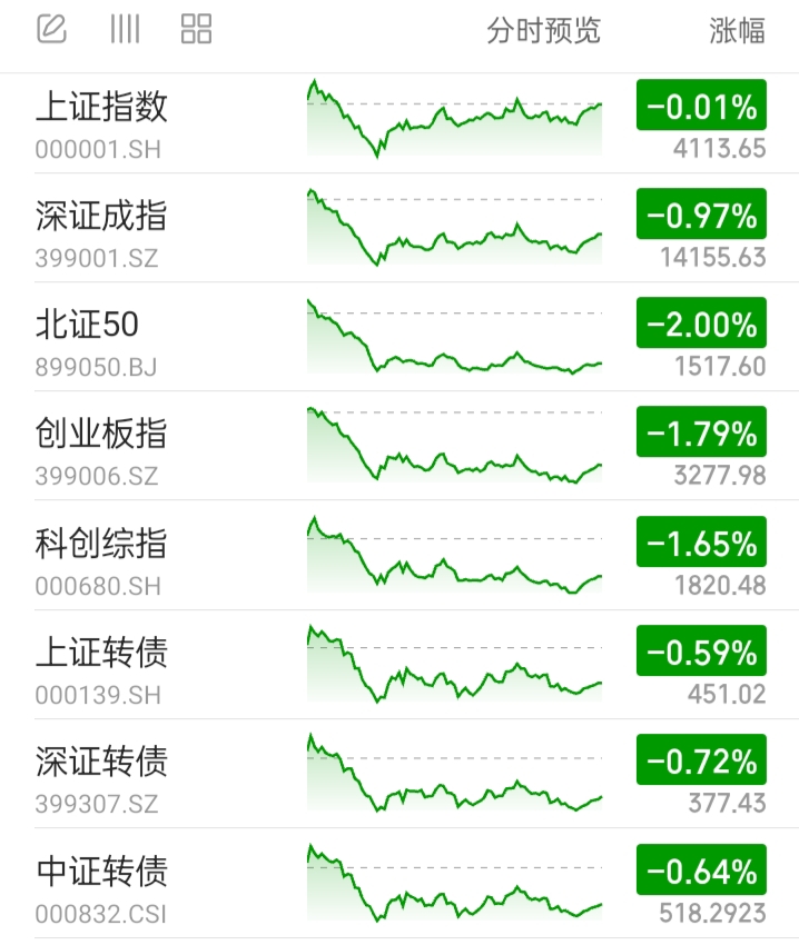 可转债主要指数:全部下跌。今天偏可转债混基可能下跌。