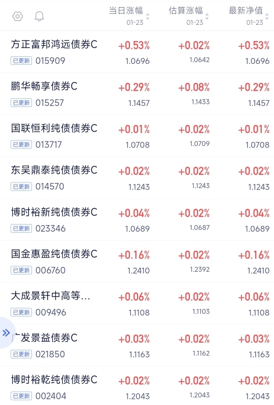7-10年期利率债今天表现不错,$方正富邦鸿远债券C$今天收下53个蛋,近期的利