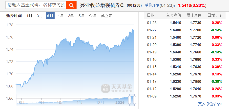 兴业收益增强上周五又收20蛋,净值再创新高。近6月涨幅6.28%,近1年涨幅9.68%,近2年直接冲到23.68%,中长期业绩稳居同类前列,大幅跑赢纯债基和多数同类。