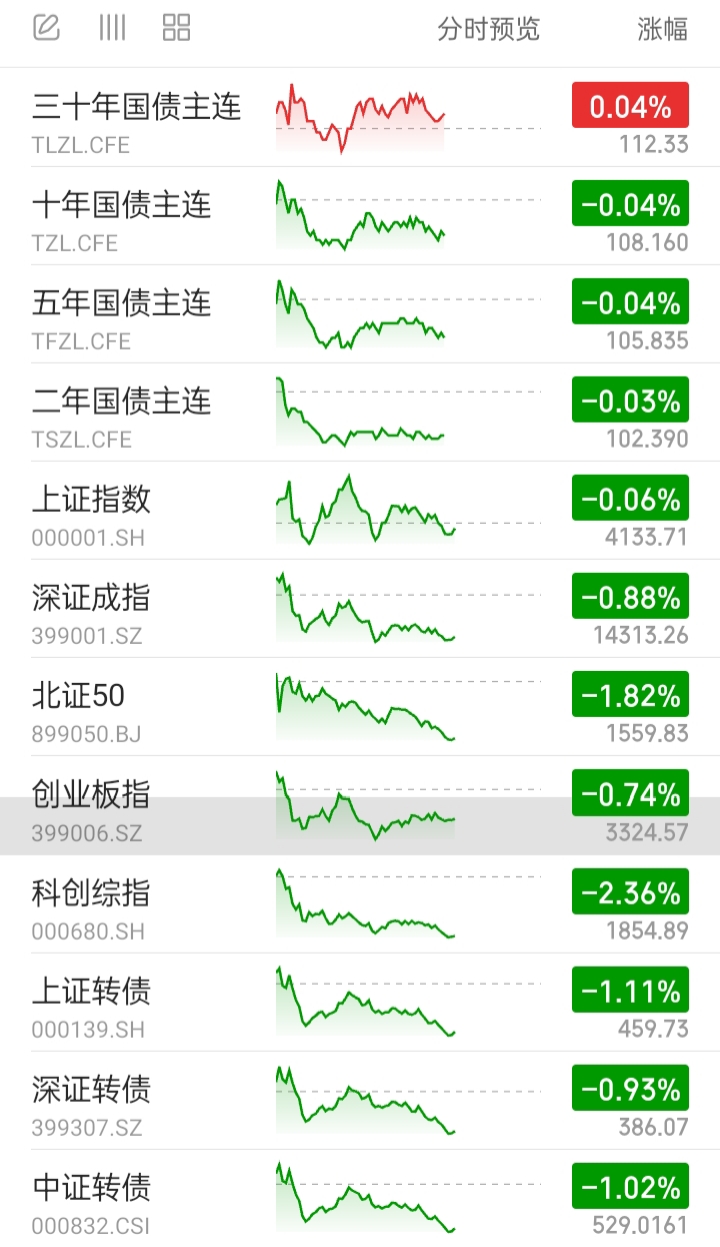 10年国债期货目前是跌0.04%。上午是跌0.03%。