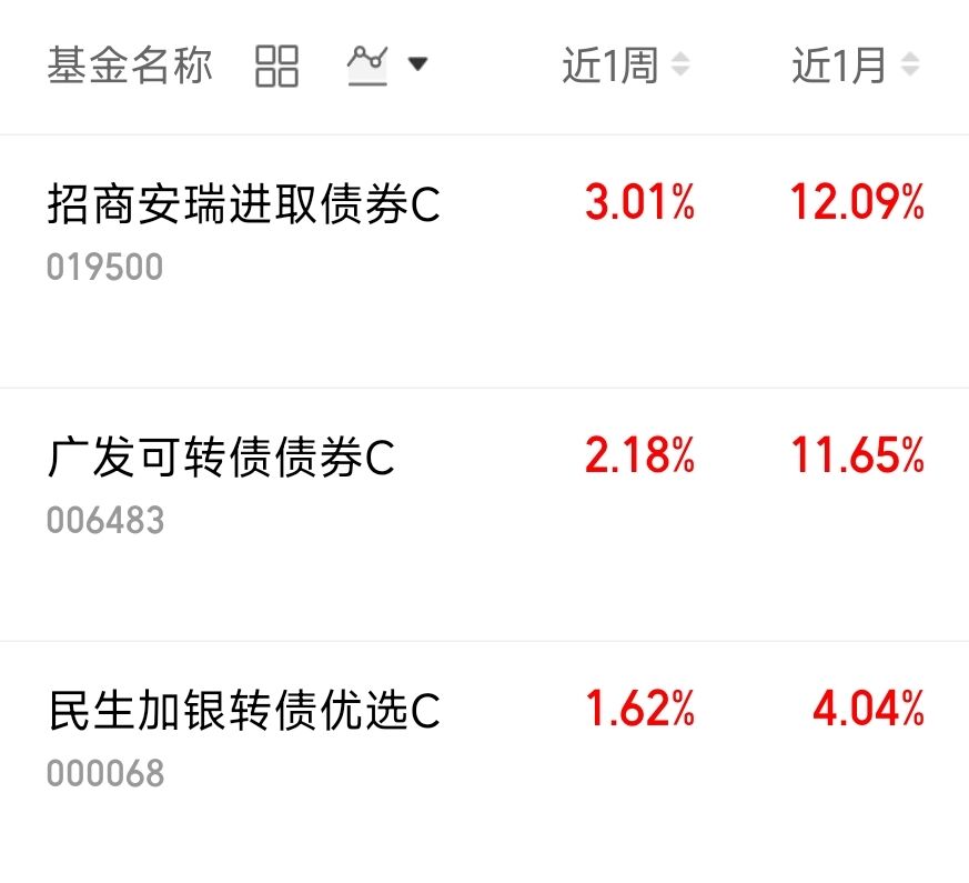 偏债基金的风险是真的可控!它大部分仓位投在债券上,本身波动就小,就算碰到股市大跌的行情,也不会亏太多钱,不会出现股票基金那种大起大落的情况。拿着这类基金不用担惊受怕,心里特别有底,$招商安瑞进取债券C(OTCFUND|019500)$近1周上涨3.01%。