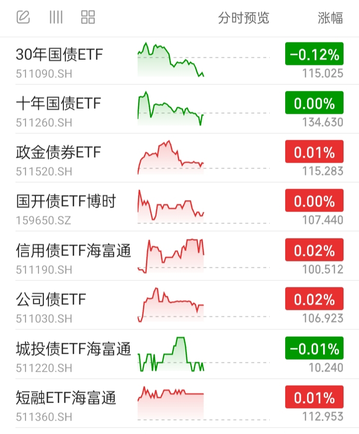 信用债ETF、公司债ETF、城投债ETF,代表信用债基。1跌2涨