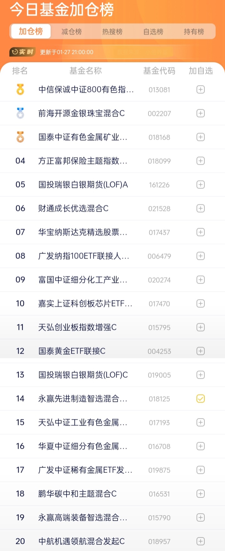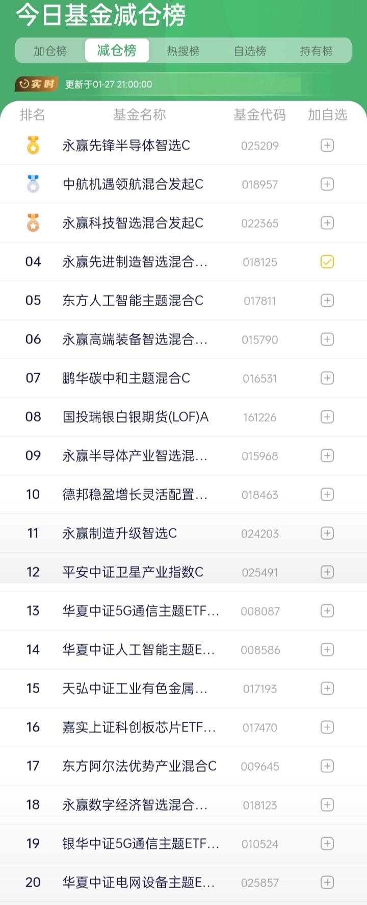 五、基金加、减仓榜