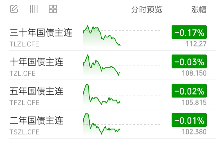 国债期货全部下跌。