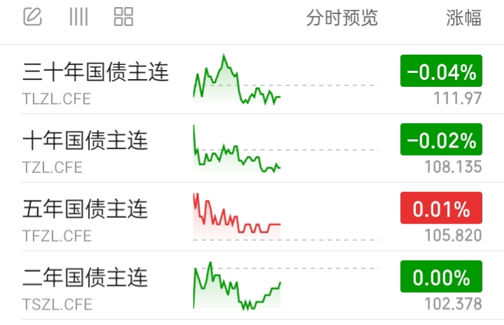 今天股市震荡,对债市影响不大,债市整体高开低走。长端、超长端利率债、信用债走势较弱,中短端利率债走势稍强,短端和长端老是不同步,相互拉扯,所以近期行情不温不火,涨不动,跌也跌不多,但目前国债期货的趋势有逐步走弱的迹象。