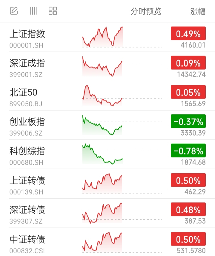 可转债主要指数:全部上涨。今天偏可转债混基可能上涨。