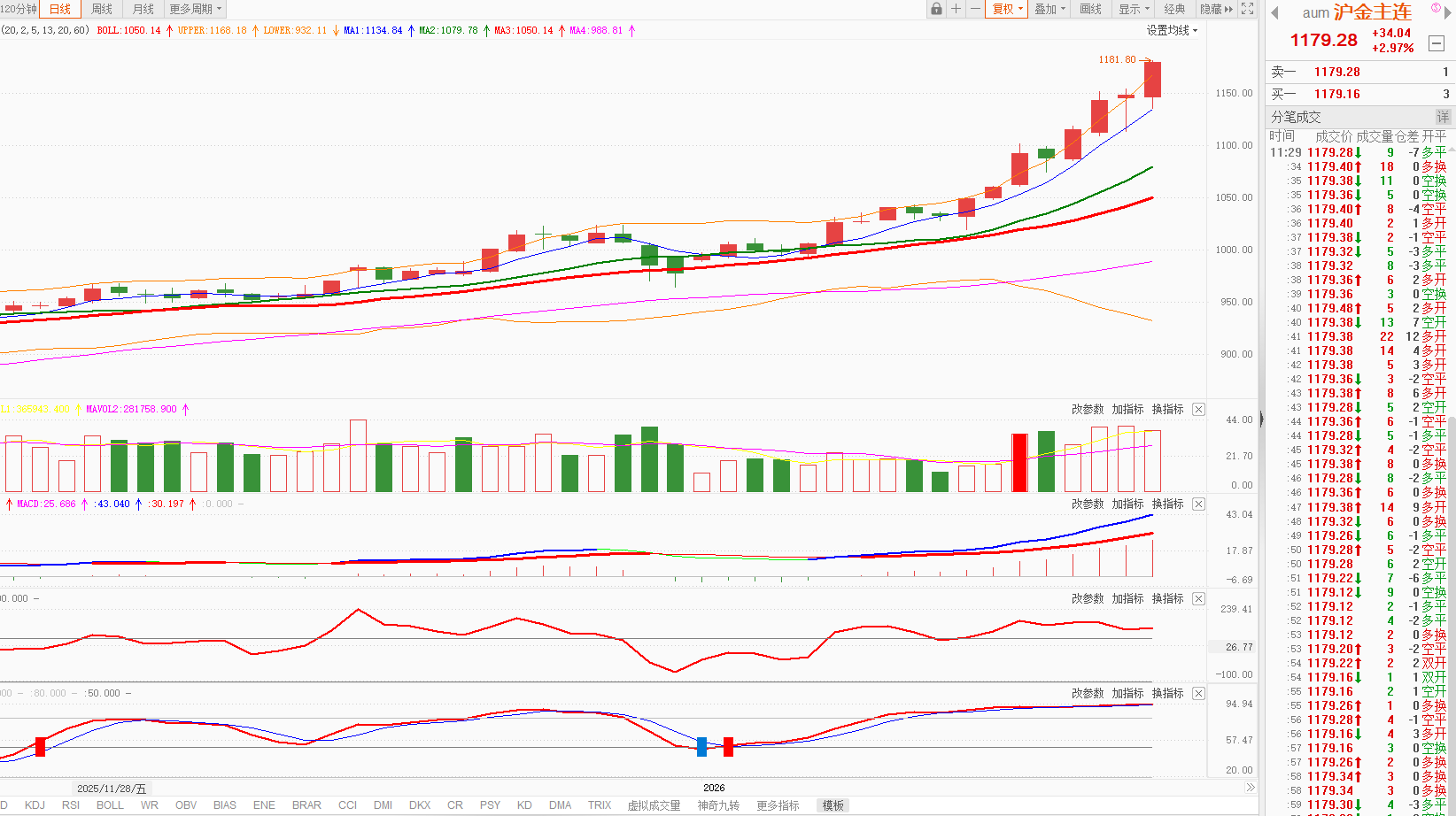 沪金主连:涨2.97%,日K线在5日均线之上。今天沪金继续大涨,再创新高,目前涨疯了,已经没有什么拦得住它了。但越是这样,后面一旦有调整,可能也很猛,所以不能梭哈追高,长期投资可持基观望,做波段的可适量高抛低吸。