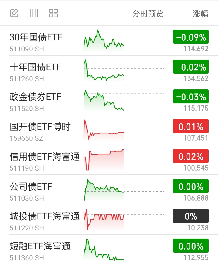 信用债ETF、公司债ETF、城投债ETF,代表信用债基。2平1涨