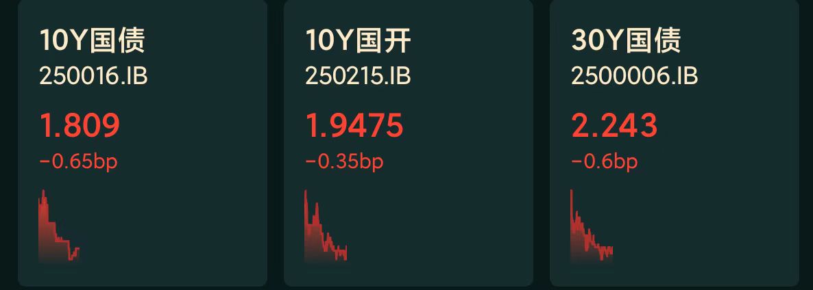 十年期国债收益率:1.809%,-0.65BP(国债收益率越跌,债市越涨)
