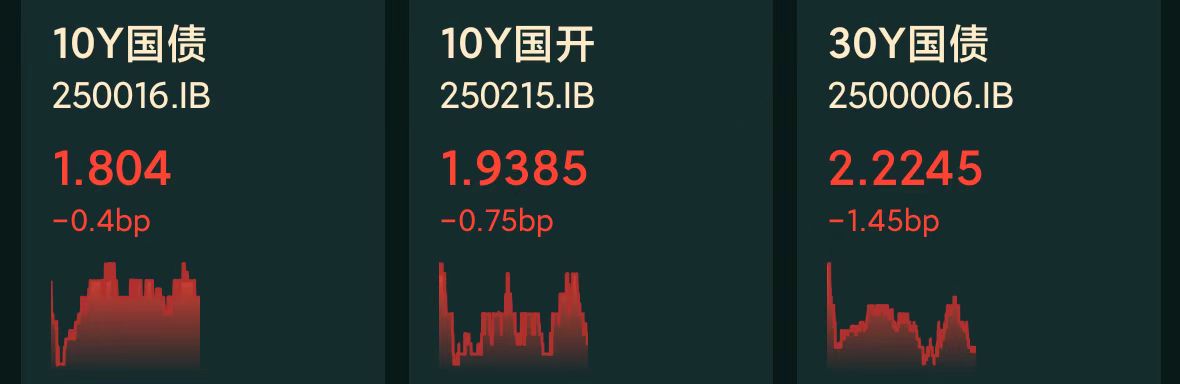 十年期国债收益率:1.804%,-0.4BP(国债收益率越跌,债市越涨)