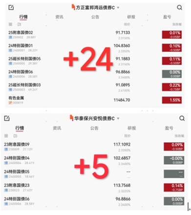 今天债市有些起色吧,不过不是很大,基本上就是收小蛋的状态。这两天看起来还是带点其他的好了,而且是带有色的香啊。人家手里的有色,这几天就起到对冲作用了,还能靠自己的上涨给收蛋,如果后面环境继续好起来,人家利率+这个策略能拿的蛋就比咱们多多了啊。$方正富邦鸿远债券C$ $永赢鑫享混合C$