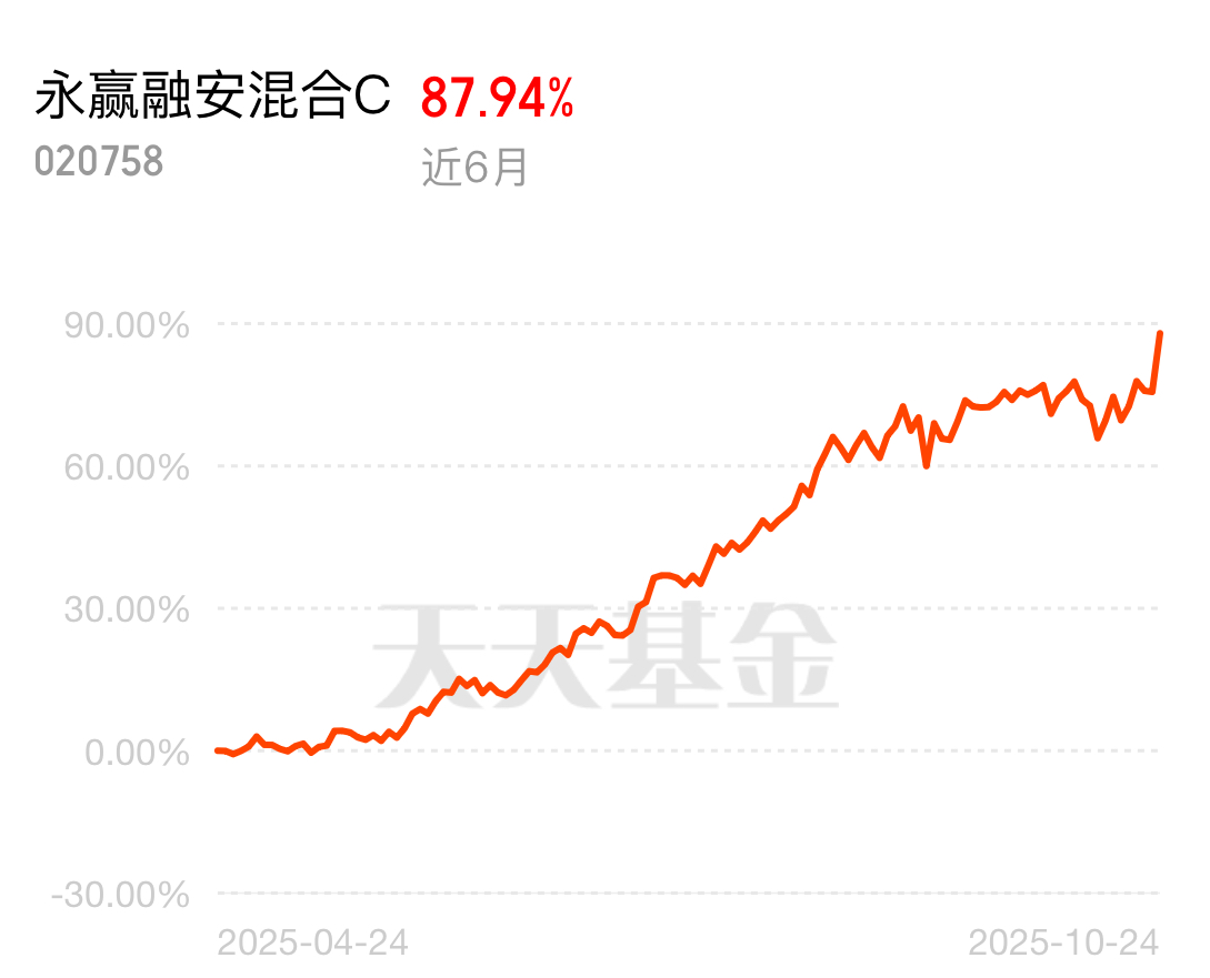 这涨势,太硬气了,一天就有7个点,看来得找机会买点了$永赢融安混合C$