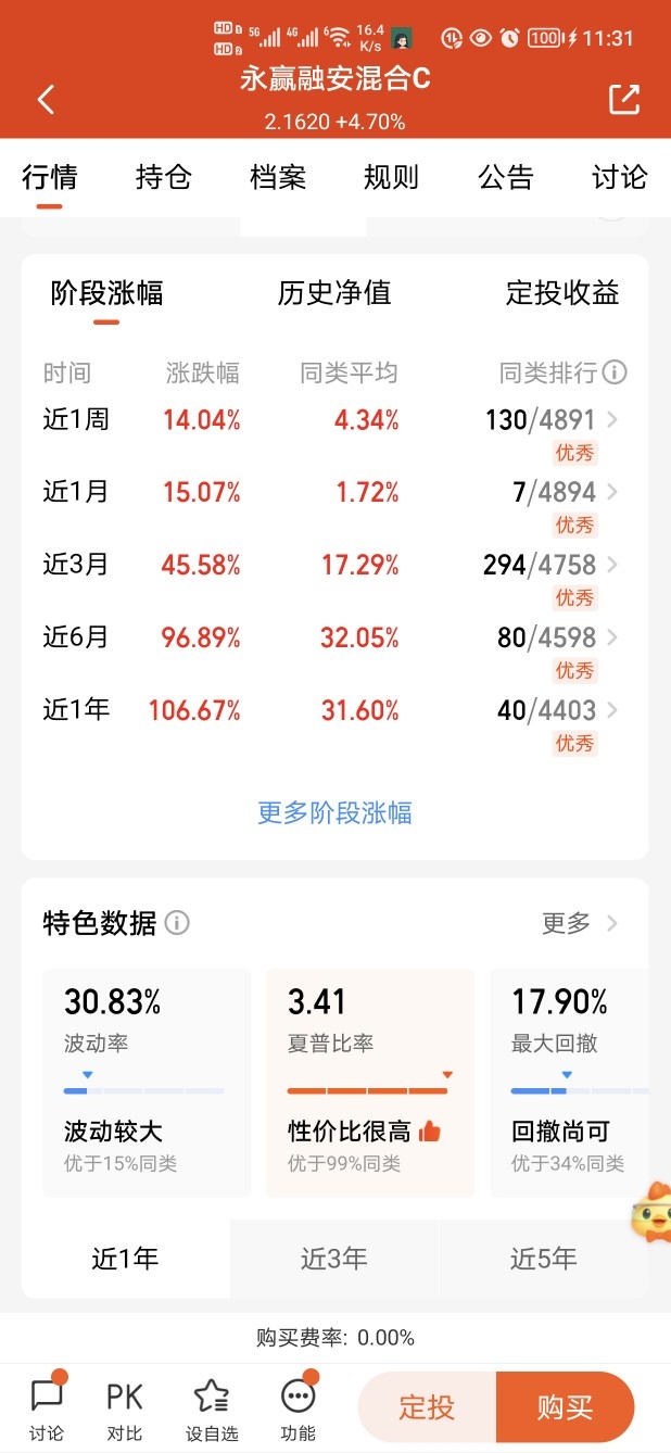 跟着靠谱的经理,是真的能够事半功倍呀,$永赢融安混合C$ 近一年业绩翻倍了,基金经理高楠,选股大神,每次季报持仓披露后都持有各行业龙头股。这季度买的是量子和CPO。还有几只小众股听都没听说过,也都是一直上涨,比我自己操作赚得多多了。每季度持仓我看了看,都是当季最好的那些股票,而且同时持有好几个赛道,更能捕捉当前的轮动行情。我们可以看到,从进一周到近一年,所有阶段都是排名同类优秀,香的很#现货黄金跌破4000美元!缘何突然暴跌?#
