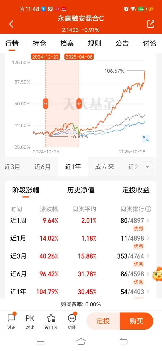 $永赢融安混合C$目前也是布局时机,弹性十足的,近一周涨幅9.64%,近三个月涨