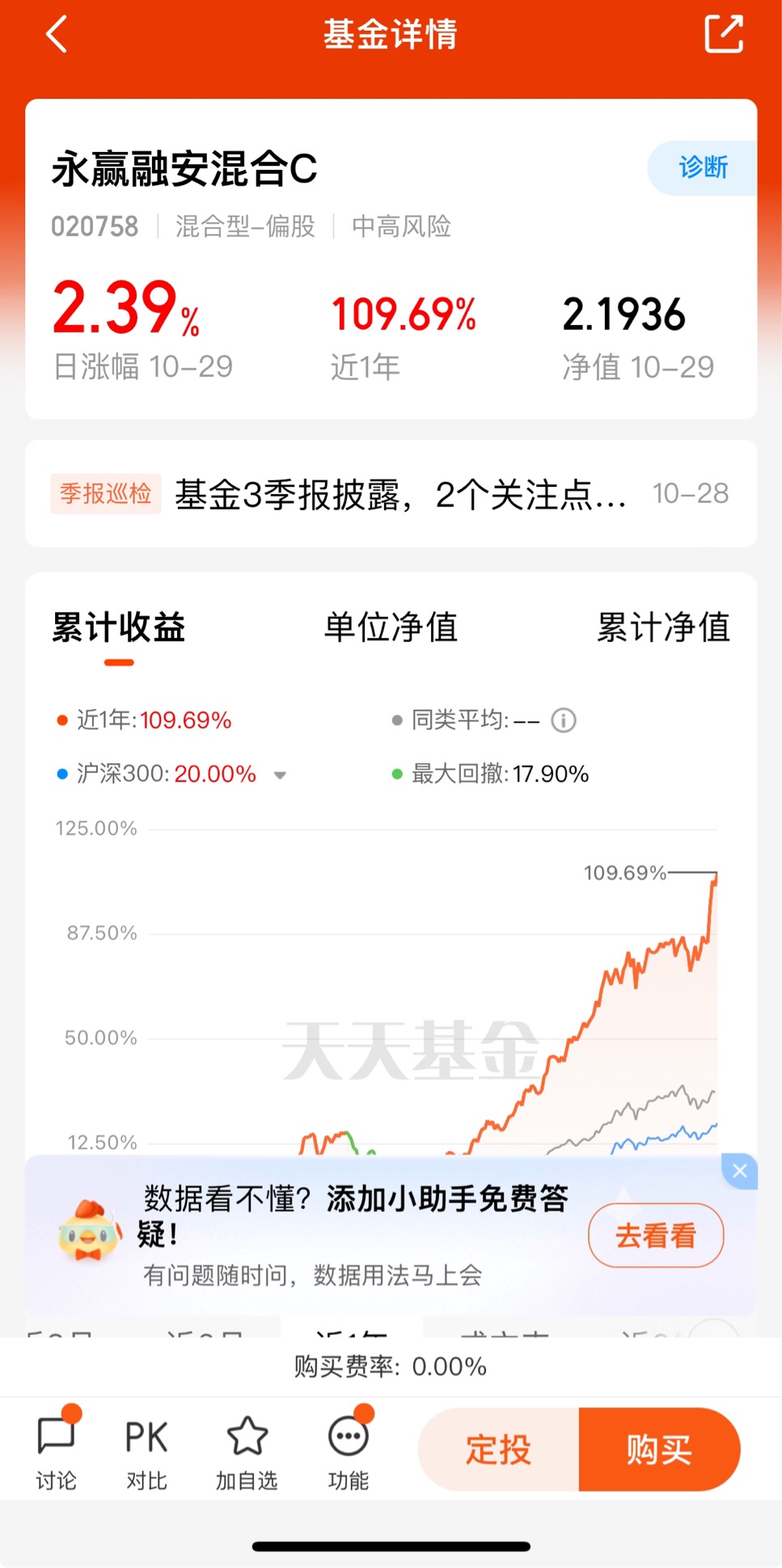$永赢融安混合C$今天挺惊喜收2.39%,近一个月收14.57%,近3个月收39
