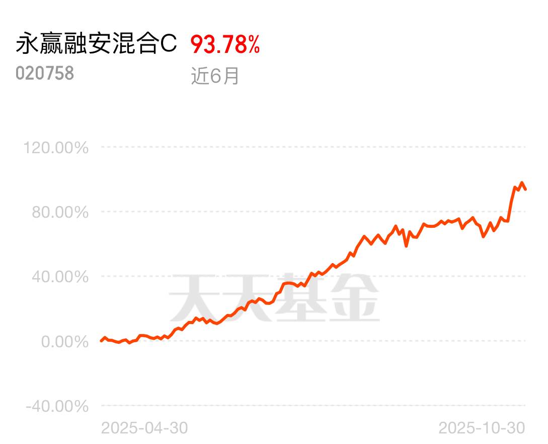近6个月涨了93 个点,挺有实力的,趁低埋伏起来了$永赢融安混合C$