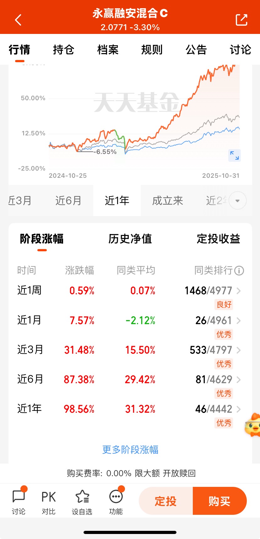 $永赢融安混合C$年内收益率为98.56%,近三个月收益31.48%,近六个月收