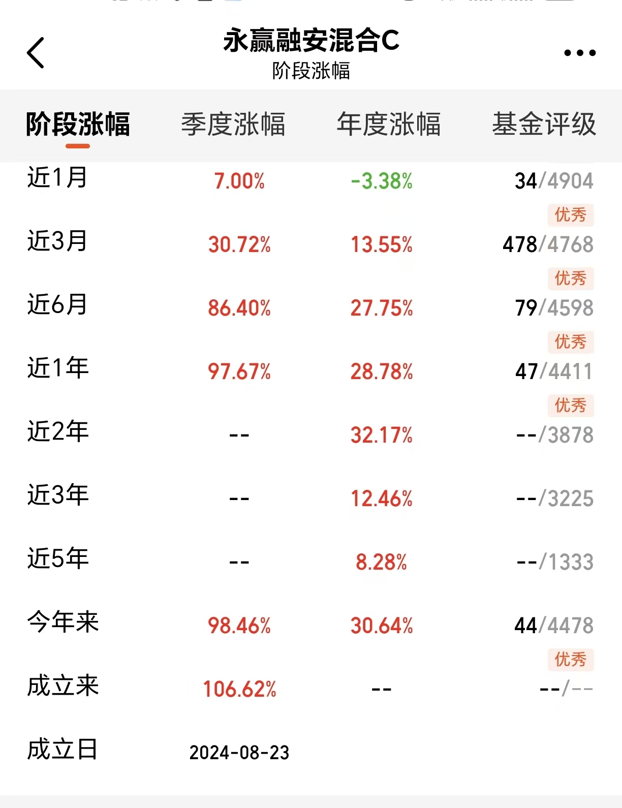 最近市场开始震荡了,大盘一直在4000点徘徊,还能买什么呢?朋友推荐给我了$永赢融安混合C$ (020758),近1年上涨97.67%用亮眼业绩证明了自身实力,成为把握科技轮动机遇的优质选择!