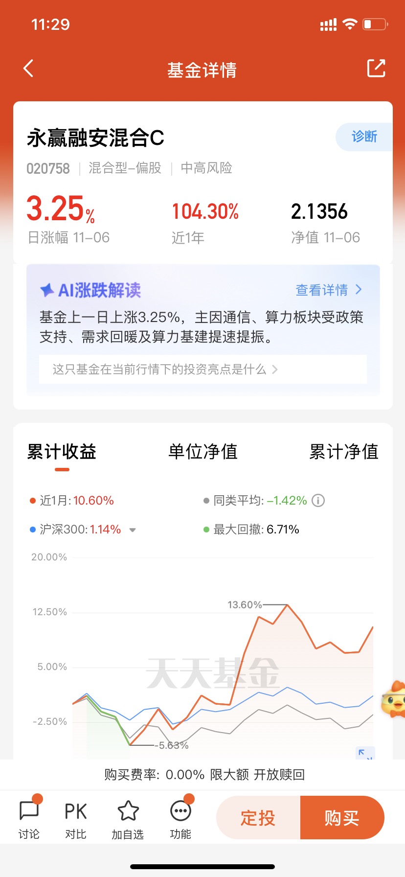 $永赢融安混合C$ 昨天涨了3.25%,四天三涨,不得不说,这里弹性十足啊!近三个月涨超30%,近半年想变88%,近一年涨超104%,短期业绩爆发力强,长期业绩表现优秀亮眼,妥妥的实力派!永赢融安是一只行业配置多元化的基金,配置均衡,这样就可以规避单一赛道带来的回调风险,期待接下来的表现了!#科技小登大揭秘#